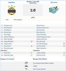 Es war ein dramatisches Finale, das vor 15.000 Zusehern im Ernst-Happel-Stadion Rapid durch ein Tor von Peter Guggi (22.) mit 1:0 (1:0) gewann. Walter Schachner hatte in der 55. und 73. Minute die Sensation vor sich, aber der Teamtorhüter Michael Konsel rettete mit Superreflexen.
