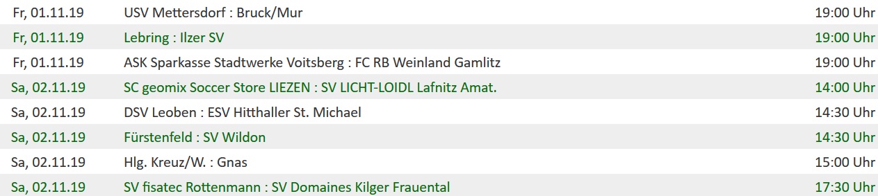 In der 15. Runde der Meisterschaft geht es zum Aufsteiger nach Gamlitz. Spielbeginn am Freitag, 08.11.19 ist um 19:00 Uhr - das letzte Spiel des Jahres findet dann am Samstag, 16.11. in Judenburg statt: Dort trifft der DSV Leoben ab 14:00 Uhr in der 5. Runde des Steirercups auf den Tabellenzweiten der Oberliga Nord, den FC Judenburg.