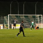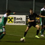Und in die Phase hinein, in der sich die Donawitzer zumindest etwas erfangen und selbst nach vorne gelangen (Schranz-Fehlschuss), gehen die Gamlitzer in Führung. Dabei führt eine klare Abseitssituation nicht zum erhofften Pfiff, da der betroffene Spieler (zumindest laut Assistenten) nicht ins Geschehen eingreift. Die Donawitzer schalten zu früh ab, Rode nützt die Situation eiskalt aus und überhebt den herauseilenden Petrovcic zum 1:0-Führungstreffer (der Rettungsversuch von Schranz scheitert). Wird wohl korrekt gewesen sein, dennoch ärgert sich Rinner darüber zu lange und kassiert die gelbe Karte.
