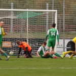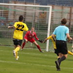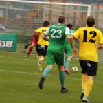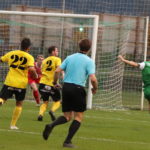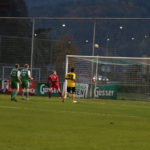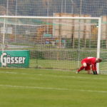 Nachdem 45 Minuten um sind, fallen noch vor der Pause zwei Tore. Tragler bringt einen hohen Freistoßball in den Strafraum Richtung Omer. Die beiden größeren Abwehrspieler dahinter gehen gemeinsam zum Ball, Hoppaus „gewinnt“ das Duell, trifft den Ball aber so unglücklich, dass er in hohem Bogen über den eigenen Tormann zum 2:2 im eigenen Gehäuse landet. Ausgleich unmittelbar vor dem Seitenwechsel, was will man mehr! Sollte man meinen. Die Extrazeit ist noch nicht um, bei einem hohen Ball erkennt der Schiedsrichter ein Handspiel knapp außerhalb des Strafraumes. Es kommt, wie es kommen muss, Jurisic tritt an und versenkt den Ball über die Mauer an Stangl vorbei zum 2:3.