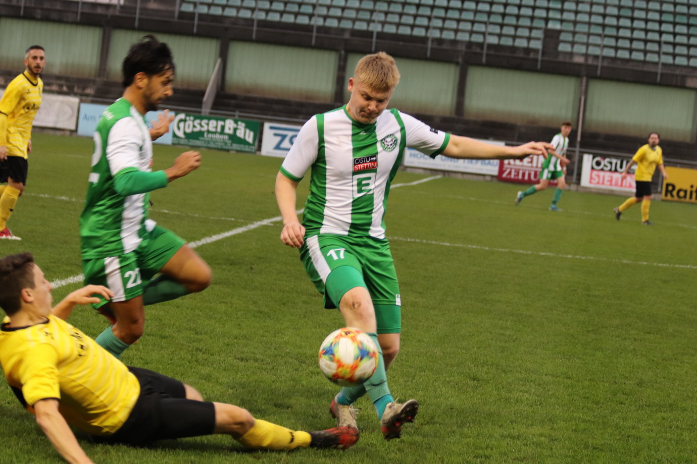Stark verbessert präsentieren sich die jungen Donawitzer gleich zu Beginn gegen den Tabellendritten, den SC Parschlug. Angetrieben vom erstmals für die DSV Juniors spielenden Rafih Omer, der durch große Lauffreudigkeit und Übersicht heraussticht, kommen die Grünweißen zu den ersten Offensivszenen. Ein Schussversuch von Omer wird geblockt, bei einer Hereingabe von Stocker zur Mitte kann Krainer gerade noch von Sommerauer (entscheidend) gestört werden, ein Krainer-Schussversuch misslingt allerdings - der Ball geht weit über das Tor. Nach vier Minuten ist es aber soweit. Omer setzt sich im Strafraum durch, wird aber nach rechts abgetragen. Aus spitzem Winkel probiert er dennoch den Schuss - und, siehe da, am Tormann vorbei kullert der Ball zur 1:0-Führung ins kurze Eck. Sicherlich ein schwerer Tormannfehler, dennoch schön zu sehen, dass der Wille zum Abschluss in diesem beinahe unmöglichen Versuch, belohnt wurde.