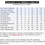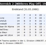 1986/87 Achter (von 8) im Mittleren Play Off (Verbleib 2. Division)