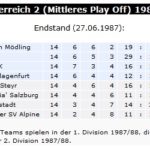 1987/88 Dritter (von 8) im Abstiegs Play Off (Verbleib 2. Division)