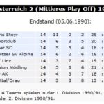 1990/91 Achter (von 8) Meister Play Off (Verbleib in der 1. Division)