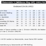1991/92 Sechster (von 8) Mittleres Play Off (Abstieg in die 2. Division). Der letzte Sieg des DSV Leoben in der höchsten österreichischen Spielklasse fand am 28.08.1991 gegen Sturm Graz statt. Jürgen Auffinger erzielte den einzigen Treffer beim 1:0-Sieg vor 3.000 Zusehern.